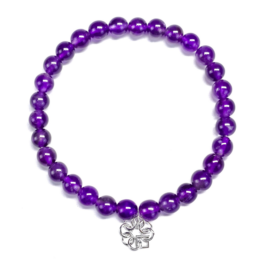 Genuine Amethyst Stretch Bracelet with Sterling Silver Embrace the Difference® Charm